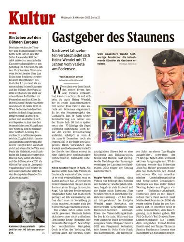 Nach zwei Jahrzehn-ten verabschiedet sich Heinz Wendel mit 77 Jahren vom Varieté am Bodensee.
