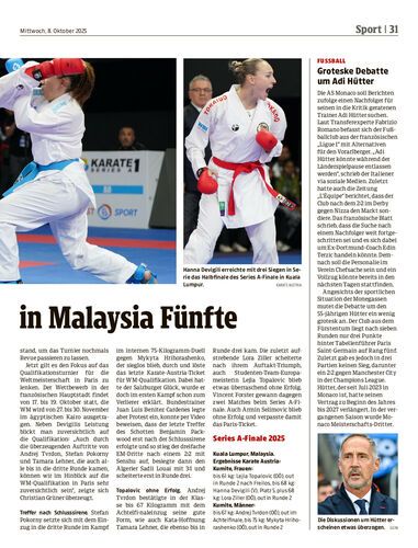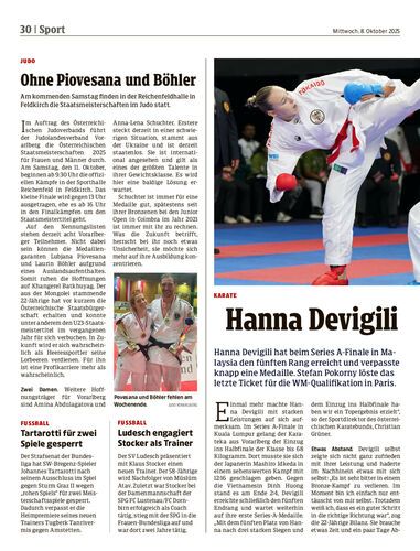 Hanna Devigili hat beim Series A-Finale in Malaysia den fünften Rang erreicht und verpasste knapp eine Medaille. Stefan Pokorny löste das letzte Ticket für die WM-Qualifikation in Paris.