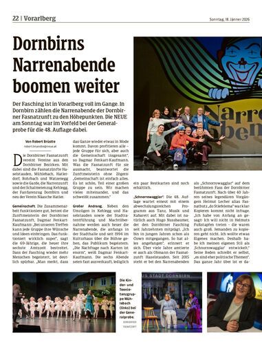 Der Fasching ist in Vorarlberg voll im Gange. In Dornbirn zählen die Narrenabende der Dornbirner Fasnatzunft zu den Höhepunkten. Die NEUE am Sonntag war im Vorfeld bei der Generalprobe für die 48. Auflage dabei.