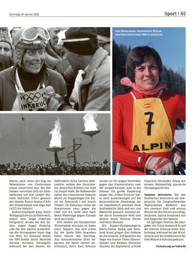 Serie. Am 6. Februar beginnen die 25. Olympischen Winterspiele. In einer mehrteiligen Serie blicken wir auf die Entwicklung der Winterspiele zurück und erinnern an die Stars der verschiedenen Epochen. Der dritte Teil rückt die Ära zwischen 1964 und 1976 in den Mittelpunkt – und damit jenes Zeitfenster, in dem die Winterspielezwei Mal in Innsbruck stattfanden.