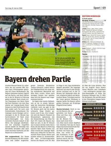 Spielbericht. Der FC Bayern gewinnt das Spitzenspiel bei RB Leipzig mit 5:1. Zur Pause lagen die Münchner mit 0:1 in Rückstand, was folgte, war eine Machtdemonstration historischen Ausmaßes.