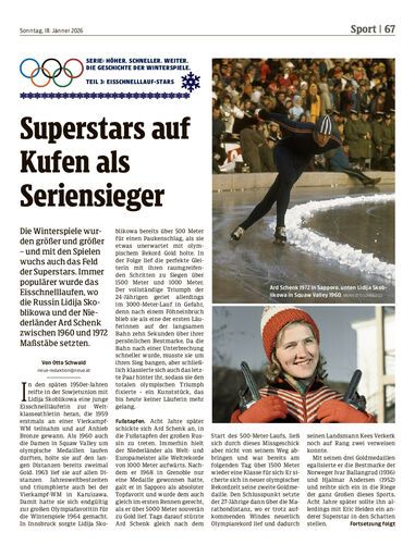 Die Winterspiele wurden größer und größer – und mit den Spielen wuchs auch das Feld der Superstars. Immer populärer wurde das Eisschnelllaufen, wo die Russin Lidija Skoblikowa und der Niederländer Ard Schenk zwischen 1960 und 1972 Maßstäbe setzten.