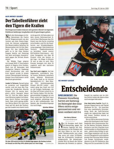Spielbericht. Die Pioneers Vorarlberg hatten am Samstag im Heimspiel den Graz 99ers nichts entgegenzusetzen und verloren verdient mit 0:4.