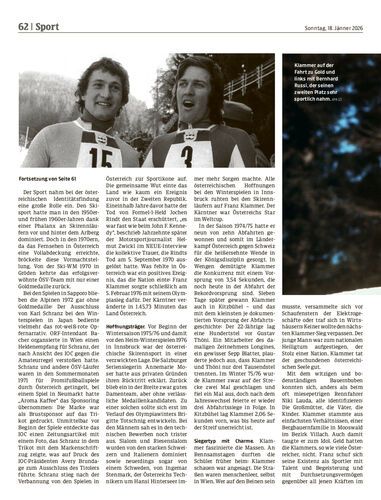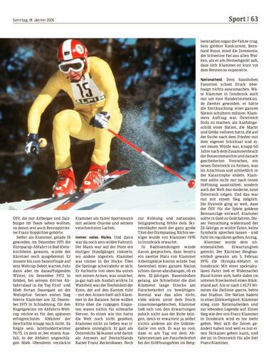 Zeitreise. Vor 50 Jahren, am 5. Februar 1976, wurde Franz Klammer in Innsbruck Abfahrts-Olympiasieger. Bis heute gilt Klammers Sieg am Patscherkofel als der wohl größte Momente der österreichischen Sportgeschichte – und als eine Sternstunde der Zweiten Republik, die Österreich auf dem Weg aus der Folklore zur Moderne geprägt und verändert hat.