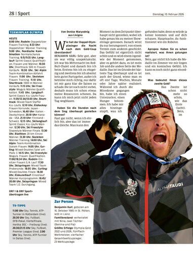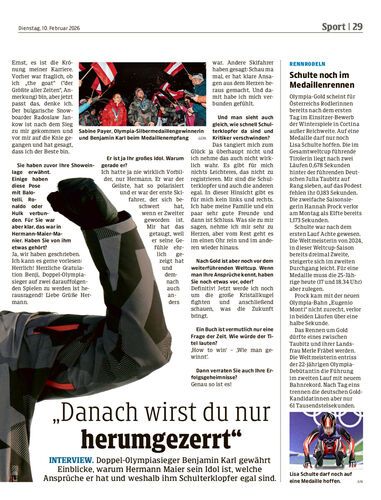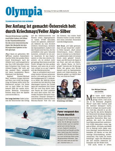 Head-Rennsportleiter Rainer Salzgeber meldet sich von den Winterspielen. Er erzählt von Historischem und blickt auf die heutige Damen-Abfahrt (11.30 Uhr).