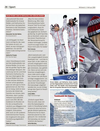 Bei der heutigen Teamkombi geht der Sieg nur über die US-Girls Johnson/Shiffrin. Auch am Start: Ariane Rädler und Nina Ortlieb. Völlig chancenlos sind die zwei Vorarlbergerinnen nicht.