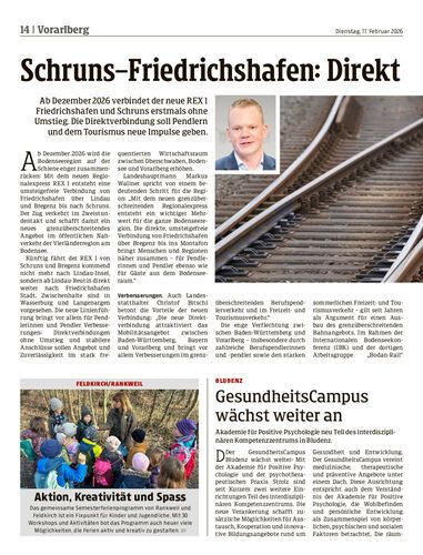 Ab Dezember 2026 verbindet der neue REX 1 Friedrichshafen und Schruns erstmals ohne Umstieg. Die Direktverbindung soll Pendlern und dem Tourismus neue Impulse geben.
