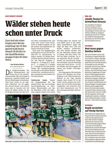 Zum Auftakt einer Englischen Woche empfängt der EC Bregenzerwald heute Abend (19.30 Uhr) in der Qualifikationsgruppe B den HC Gherdeina.