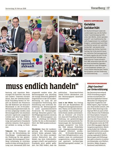 ÖGB Vorarlberg fordert faire Arbeitsbedingungen, höhere Förderung und klare Qualitätsstandards in der 24-Stunden-Betreuung.