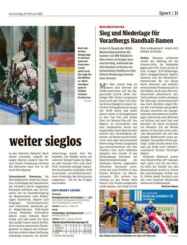In der 14. Runde der WHA-Meisterliga jubelten die Damen von BW Feldkirch über einen wichtigen Auswärtserfolg, während der SSV Dornbirn Schoren vor heimischem Publikum eine bittere Niederlage hinnehmen musste.