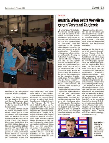 Austria Wien prüft Vorwürfe gegen Vorstand Zagiczek