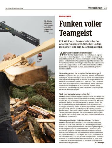 Erik Winkler ist Funkenmeister bei der Altacher Funkenzunft. Sicherheit und Gemeinschaft sind dem 35-Jährigen wichtig.