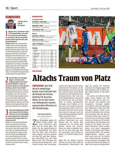 Vorschau. Der SCR Altach empfängt heute zum Auftakt der 20. Runde im Schnabelholz FK Austria Wien. Es ist der nächste Höhepunkt enorm spannender Wochen in der Bundesliga.