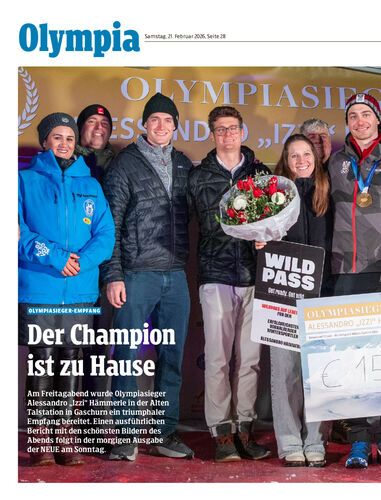 Alessandro „Izzi“ Hämmerle in der Alten Talstation in Gaschurn ein triumphaler Empfang bereitet. Einen ausführlichen Bericht mit den schönsten Bildern des Abends folgt in der morgigen Ausgabe der NEUE am Sonntag.