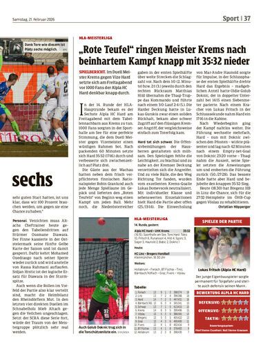 „Rote Teufel“ ringen Meister Krems nach beinhartem Kampf knapp mit 35:32 nieder