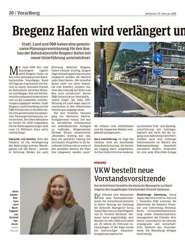 Stadt, Land und ÖBB haben eine gemeinsame Planungsvereinbarung für den Ausbau der Bahnhaltestelle Bregenz Hafen mit neuer Unterführung unterzeichnet.