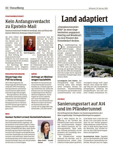 Staatsanwaltschaft Feldkirch bestätigt, dass auf Basis der Epstein-Mail kein Anfangsverdacht besteht.