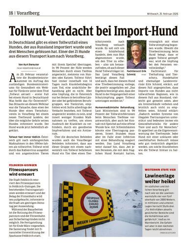 In Deutschland gibt es einen Tollwutfall eines Hundes, der aus Russland importiert wurde und drei Menschen gebissen hat. Einer der 21 Hunde aus diesem Transport kam nach Vorarlberg.