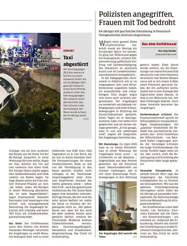 64-Jähriger mit psychischer Erkrankung in forensisch-therapeutisches Zentrum eingewiesen.