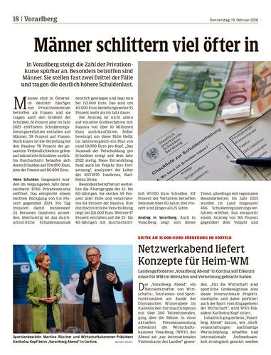 In Vorarlberg steigt die Zahl der Privatkonkurse spürbar an. Besonders betroffen sind Männer. Sie stellen fast zwei Drittel der Fälle und tragen die deutlich höhere Schuldenlast.