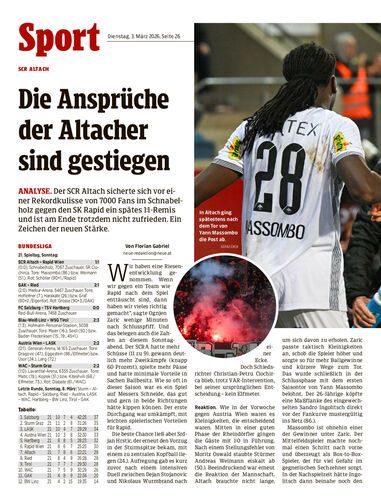 Analyse. Der SCR Altach sicherte sich vor einer Rekordkulisse von 7000 Fans im Schnabelholz gegen den SK Rapid ein spätes 1:1-Remis und ist am Ende trotzdem nicht zufrieden. Ein Zeichen der neuen Stärke.