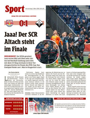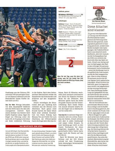 Spielbericht. Der SCRA gewinnt zum ersten Mal seit über zehn Jahren bei Red Bull Salzburg und steht mit dem 1:0-Sieg erstmals in ihrer Vereinsgeschichte im Finale des ÖFB-Cup. Das Endspiel findet am 1. Mai in Klagenfurt statt.