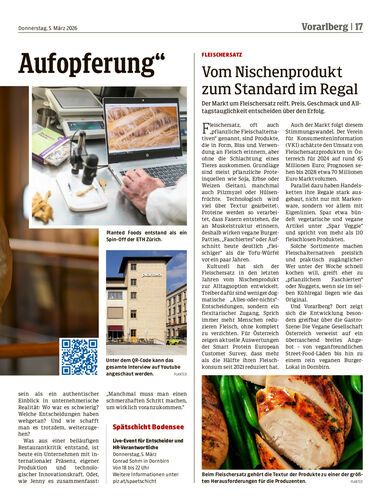 Am Donnerstag kommt der Mitgründer von Planted Foods, Christoph Jenny, zur Spätschicht Bodensee nach Vorarlberg. Vorab erzählte er im Gespräch mit der NEUE, wie aus einer Restaurantdiskussion ein Food-Startup wurde.