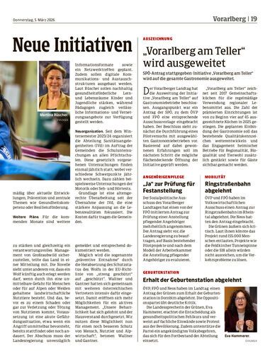 SPÖ-Antrag stattgegeben: Initiative „Vorarlberg am Teller“ wird auf die gesamte Gastronomie ausgeweitet.