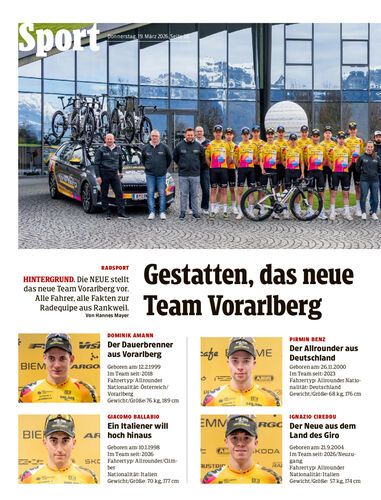 Hintergrund. Die NEUE stellt das neue Team Vorarlberg vor. Alle Fahrer, alle Fakten zur Radequipe aus Rankweil.