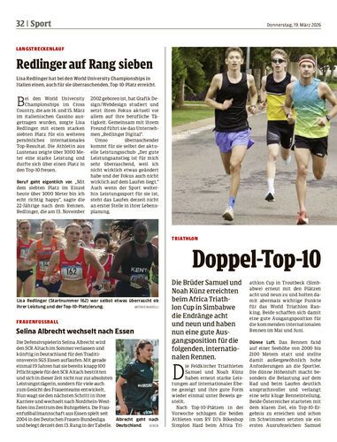 Die Brüder Samuel und Noah Künz erreichten beim Africa Triathlon Cup in Simbabwe die Endränge acht und neun und haben nun eine gute Ausgangsposition für die folgenden, internationalen Rennen.