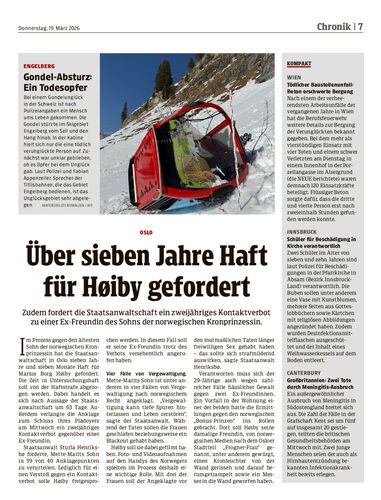 Zudem fordert die Staatsanwaltschaft ein zweijähriges Kontaktverbot zu einer Ex-Freundin des Sohns der norwegischen Kronprinzessin.
