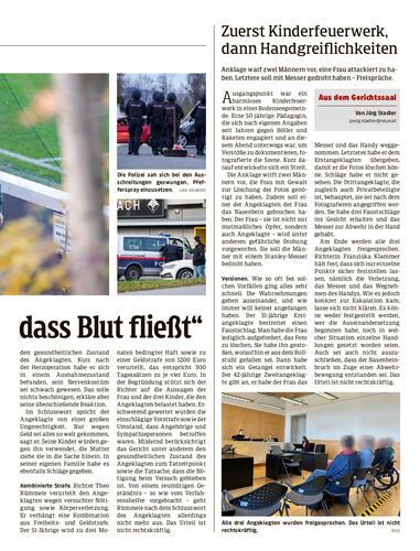 Anklage warf zwei Männern vor, eine Frau attackiert zu haben. Letztere soll mit Messer gedroht haben – Freisprüche.