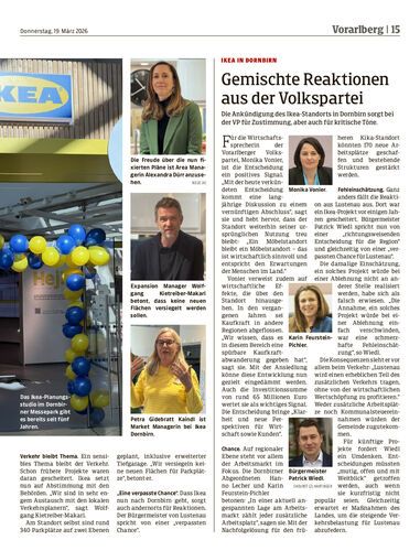 Die Ankündigung des Ikea-Standorts in Dornbirn sorgt bei der VP für Zustimmung, aber auch für kritische Töne.