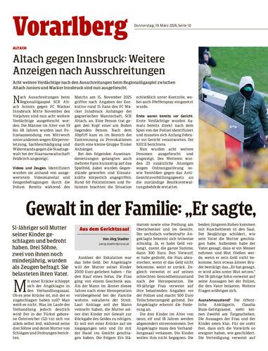 Acht weitere Verdächtige nach den Ausschreitungen beim Regionalligaspiel zwischen Altach Juniors und Wacker Innsbruck sind nun ausgeforscht.