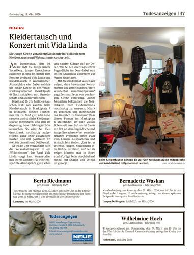 Die Junge Kirche Vorarlberg lädt heute in Feldkirch zum Kleidertausch und Wohnzimmerkonzert ein.