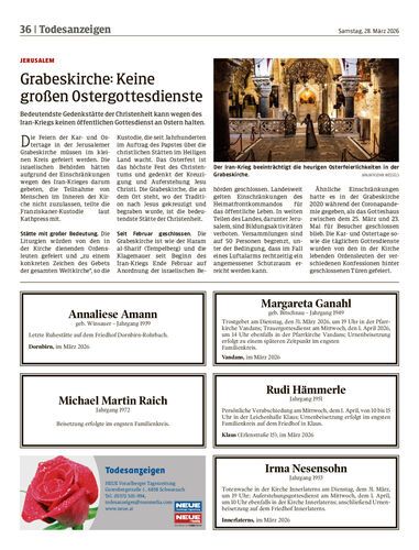 Bedeutendste Gedenkstätte der Christenheit kann wegen des Iran-Kriegs keinen öffentlichen Gottesdienst an Ostern halten.
