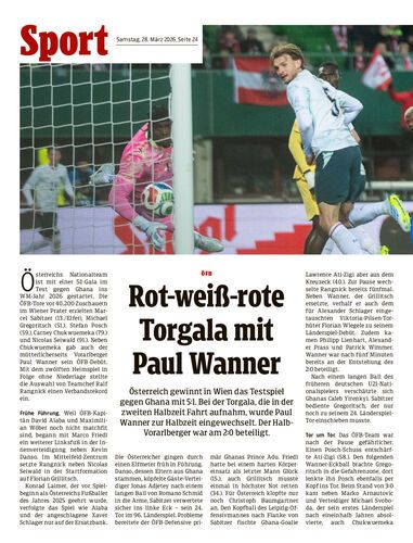 gegen Ghana mit 5:1. Bei der Torgala, die in der zweiten Halbzeit Fahrt aufnahm, wurde Paul Wanner zur Halbzeit eingewechselt. Der Halb-Vorarlberger war am 2:0 beteiligt.