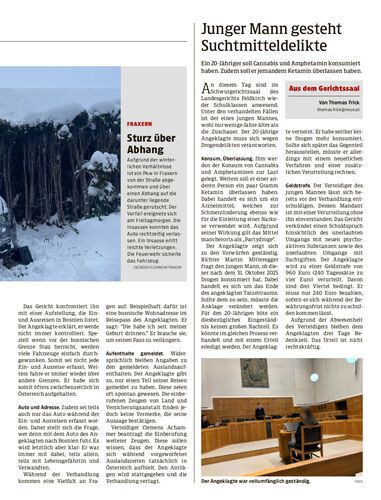 Ein 20-Jähriger soll Cannabis und Amphetamin konsumiert haben. Zudem soll er jemandem Ketamin überlassen haben.