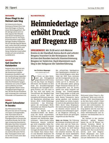 Spielbericht. Mit 35:28 setzt sich Meister Krems in der Handball-Arena durch und schickt Bregenz frustriert in die Osterpause. In den letzten drei Runden herrscht Alarmstimmung. Bregenz ist Vorletzter, Hard übernimmt nach Sieg in der Hollgasse die Tabellenführung.