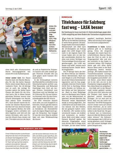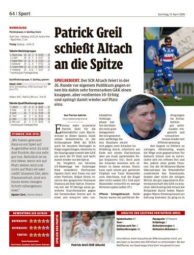 Spielbericht. Der SCR Altach feiert in der 26. Runde vor eigenem Publikum gegen einen bis dahin sehr formstarken GAK einen knappen, aber verdienten 1:0-Erfolg und springt damit wieder auf Platz eins.