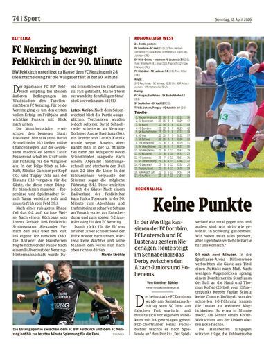 BW Feldkirch unterliegt zu Hause dem FC Nenzing mit 2:3. Die Entscheidung für die Walgauer fällt in der 90. Minute.
