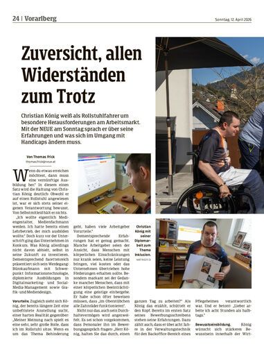 Christian König weiß als Rollstuhlfahrer um besondere Herausforderungen am Arbeitsmarkt. Mit der NEUE am Sonntag sprach er über seine Erfahrungen und was sich im Umgang mit Handicaps ändern muss.