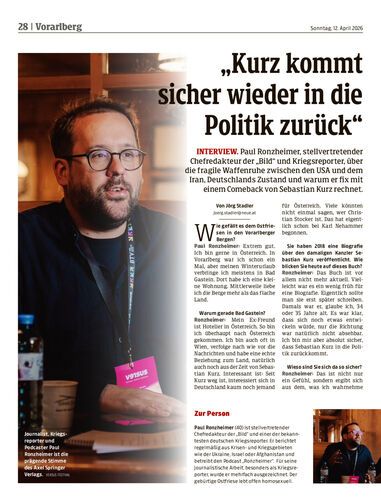 Interview. Paul Ronzheimer, stellvertretender Chefredakteur der „Bild“ und Kriegsreporter, über die fragile Waffenruhe zwischen den USA und dem Iran, Deutschlands Zustand und warum er fix mit einem Comeback von Sebastian Kurz rechnet.