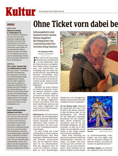 Schauspielerin und Kabarettistin Sandra Aberer begleitet die Delegation von Luxemburg beim Eurovision Song Contest.