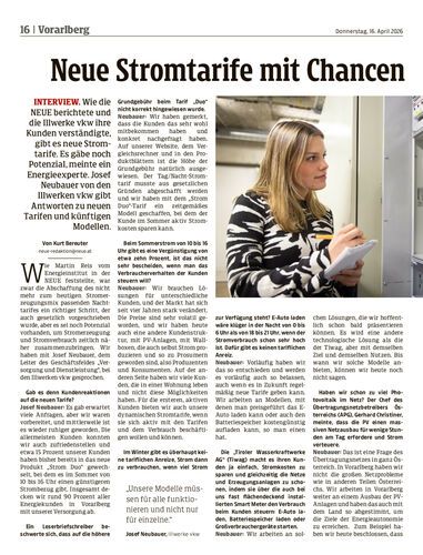 Interview. Wie die NEUE berichtete und die Illwerke vkw ihre Kunden verständigte, gibt es neue Stromtarife. Es gäbe noch Potenzial, meinte ein Energieexperte. Josef Neubauer von den Illwerken vkw gibt Antworten zu neuen Tarifen und künftigen Modellen.