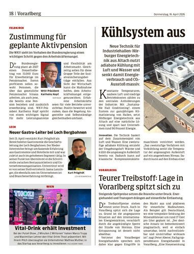 Neue Technik für Industriehallen: Hörburger Energietechnik aus Altach nutzt adiabate Kühlung mit Luft und Wasser und senkt damit Energieverbrauch und CO2-Ausstoß massiv.