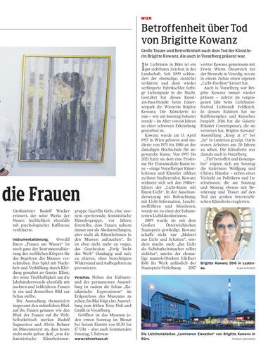 Große Trauer und Betroffenheit nach dem Tod der Künstlerin Brigitte Kowanz, die auch in Vorarlberg präsent war.