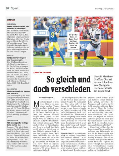 Sowohl Matthew Stafford (Rams) als auch Joe Burrow (Bengals) stehen erstmals im Super Bowl.