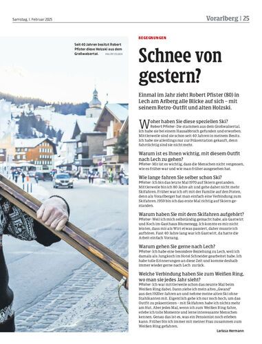 Einmal im Jahr zieht Robert Pfister (80) in Lech am Arlberg alle Blicke auf sich – mit seinem Retro-Outfit und alten Holzski.