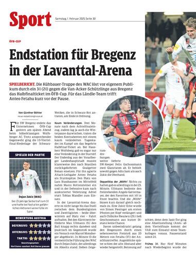 Spielbericht. Die Kühbauer-Truppe des WAC löst vor eigenem Publikum durch ein 3:1 (2:1) gegen die Van-Acker-Schützlinge aus Bregenz das Halbfinalticket im ÖFB-Cup. Für das Ländle-Team trifft Anteo Fetahu kurz vor der Pause.
